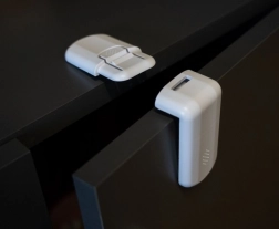 Beskyt dit hjem med MALATEC sikkerhedslåse, som forhindrer børn i at åbne skabslåger og skuffer. Installationen tager få minutter – uden boring og skruning, kun ved hjælp af en kvalitets dobbeltsidet klæbetape. Låsen giver en fast og stabil montering selv ved kraftigere træk.