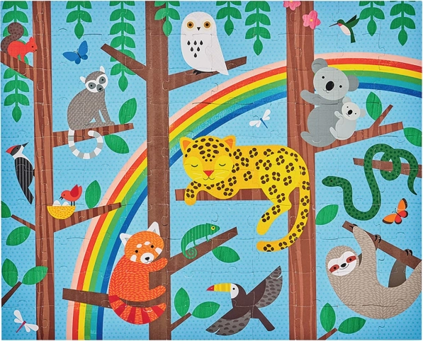 Dette kvalitetspuslespil til børn byder på to unikke designs med venlige jungledyr. Med 49 brikker er det ideelt til børn fra 5 år, som under samlingen træner fokus og sans for detaljer. Den praktiske rejsepakning gør det nemt at tage sjoven med overalt.