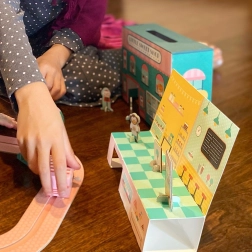 Fremstillet med omtanke for planeten – anvendt karton, papir og træ har FSC-certificering, og emballagen er helt uden plast. Sættet understøtter finmotorik, fantasi og rolleleg for børn fra 3 år.