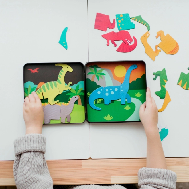 Hører du dinosaurernes brøl? Med dette magnetiske sæt fra Petit Collage kan børn skabe deres egne forhistoriske scener hvor som helst – derhjemme og på farten. Sættet indeholder 2 baggrunde og 21 magnetiske dele, som kan kombineres frit og sættes sammen til sjove historier. Legetøjet er plastikfrit, opbevaret i en metaldåse og er ideelt til børn fra 3 år.