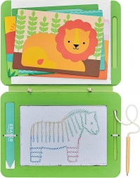 Denne magnetiske tegnetavle giver ikke kun masser af sjov, men udvikler også børns kreativitet og finmotorik. Med den medfølgende pen, som aldrig bliver væk takket være snoren, og 5 stk. tegneskabeloner er dette legetøj ideelt til endeløs tegning og læring.