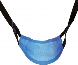 Textsædet af nylon og polyester er behageligt at røre ved, ventilerer godt og hjælper med sin skridsikre overflade barnet til at sidde stabilt under gyngeturen.