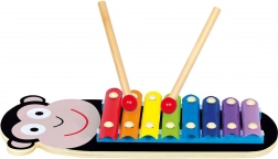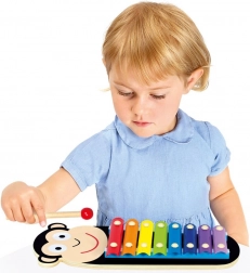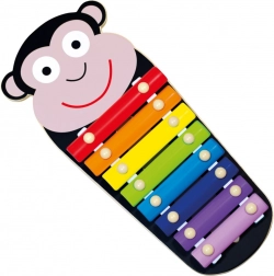 Børne-metallofon med abe-motiv. 3-delt sæt med 8 metalplader, der giver spil i fuldt toneomfang. Metallofonen giver børn mulighed for at stifte bekendtskab med musikkens grundprincipper og udvikle deres musikalske talent. Den er derfor den ideelle legeting til barnets første musikalske skridt. Behandlet med giftfri maling, afrundede hjørner og glatte overflader sikrer bekymringsfri musikstunder. Velegnet til børn fra 18 måneder. Advarsel! Til børn under 18 måneder kun under opsyn af en voksen. Hovedegenskaber: 3-delt sæt, 8 toner, udvikler musikalsk talent