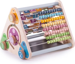 Denne kvalitets træaktive trekant giver børn timevis af meningsfuld leg. Takket være den stabile konstruktion og det gennemtænkte design uden små dele er den ideel til både hjemmebrug og børnehaver. Børn øver på legende vis tælling, genkendelse af bogstaver og dyr, hånd-øje-koordination og kreativitet på kridttavlen.