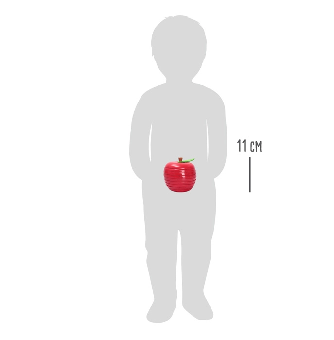 Den holdbare trækonstruktion med glat overflade, filtblad og strålende farver sikrer lang levetid og et attraktivt udseende. Det samlede æble bliver en pynt på enhver hylde og en fantastisk gave til børn fra 3 år.