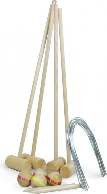 Oplev klassisk udendørs underholdning med det elegante kroketsæt til 4 spillere fra VILAC. Pakket i en praktisk bæretaske og indeholder alt, hvad du behøver – massive, lakerede trækugler, køller og pæle. Ideelt til have, park og familieture, fremstillet i Frankrig i høj kvalitet.