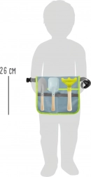 Tekstilbæltetasken med praktiske lommer holder værktøjet sikkert på plads. Den justerbare rem med klikspænde tilpasses nemt dit barns vækst.