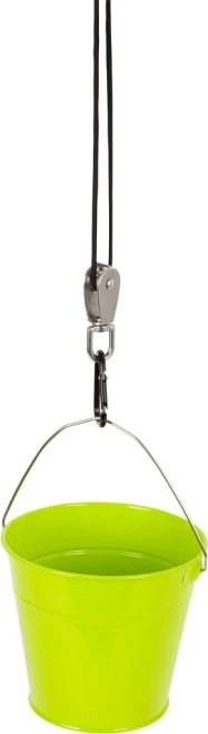 Dette robuste sæt kombinerer en holdbar metalspand, et stærkt 10 m reb og et taljesæt med to skiver med karabiner for nem ophængning. Børn lærer på en sjov måde, hvordan den mekaniske fordel fungerer, og kan med minimal anstrengelse løfte små genstande i højden.