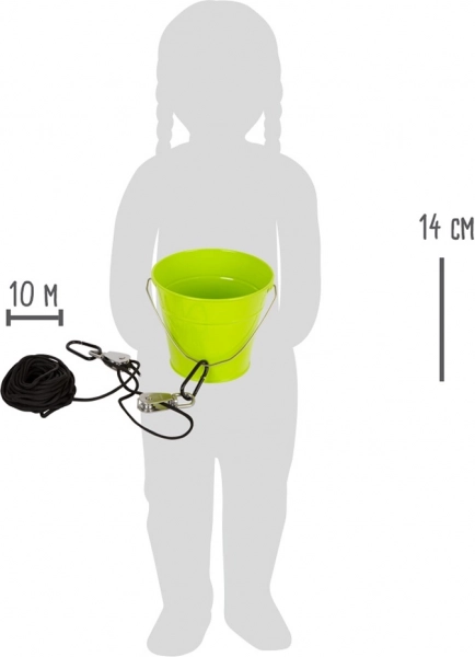 Opdag en smart måde at gøre det lettere for børn at løfte ting – small foot-talje med stærkt reb og en robust metalspand. Takket være taljens mekaniske fordel kan børn nemt og sikkert transportere “lasten” op og ned uden hele tiden at skulle klatre. En fantastisk legeting til legehus, klatrestativ og træhus, som udvikler fingerfærdighed, logisk tænkning og forståelse for taljens princip.