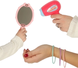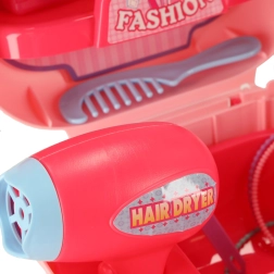 Opdag en magisk skønhedssalon gemt i en let plastkuffert med hank. Børn kan lege frisør og kosmetiker, bruge fantasien og lære at pleje deres udseende på en sikker og legende måde.