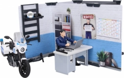 Denne BWORLD Bruder politistation tilbyder en fantastisk mulighed for børn til at skabe deres egne historier og situationer. Politistationen fungerer som et koordineringscenter med en kontorafdeling, hvor politimanden kan overvåge og styre missioner. Stationen indeholder: