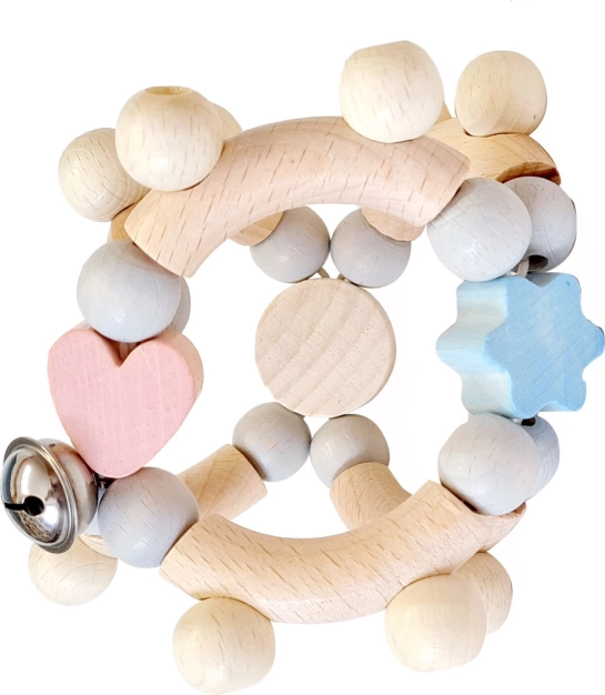 Trærangle med motorisk fokus fra mærket Hess imponerer med pastelfarver og en lille klokke, som stimulerer fantasien og forbedrer barnets finmotorik.