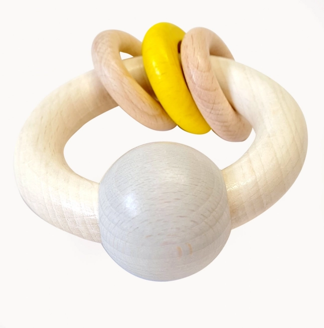 Trærangle til dit barn hjælper med at udvikle de første motoriske færdigheder og er en ideel ledsager både derhjemme og på farten. Alle materialer er spytbestandige, hvilket beskytter legetøjet mod skader.