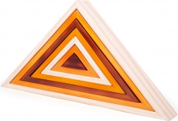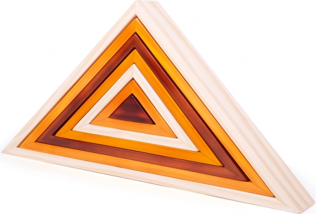 Disse træfoldbare trekanter er ideelle for små kreative byggefolk. Uden faste regler og instruktioner kan børnene naturligt udvikle deres færdigheder og opdage nye måder at stable på. Trekanterne kan let kombineres i forskellige former, mens børnene lærer at genkende forskellige størrelser og farver.