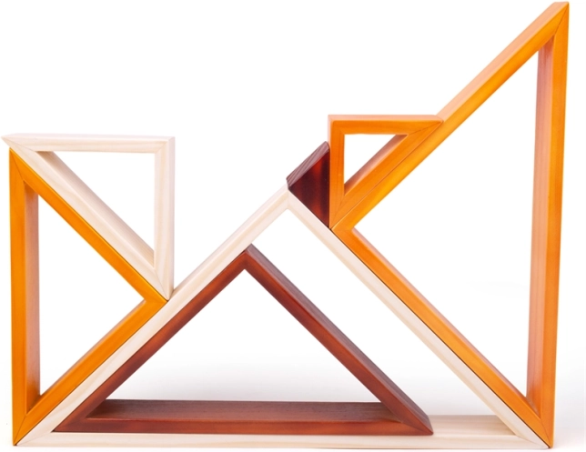 Børn kan udvikle deres kreativitet og finmotorik ved at stable trekanterne.