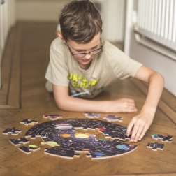 Dyk ned i universets verden med vores runde gulvpuslespil, der viser solsystemet. Dette fantastiske produkt er skabt ikke kun for sjov, men også for læring. Sæt alle brikker sammen og skab en imponerende 360-graders scene fuld af planeter og stjerner.