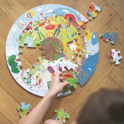 Det runde gulvpuslespil til børn fra Bigjigs Legetøj tilbyder en unik måde for børn at lære om sæsonændringer. Hver puslespilsbrik er omhyggeligt designet til at skabe en samlet 360 graders scene, der præsenterer forskellige aktiviteter og landskaber karakteristiske for forår, sommer, efterår og vinter.