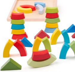 Træbuer og trekanter fra BIGJIGS TOYS er ideelle til fri leg. Børn kan stable, bygge og eksperimentere med former og balance, hvilket naturligt udvikler fantasi og logisk tænkning. Den praktiske træbase gør det nemt at opbevare og transportere.