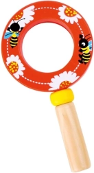 Dette kvalitetsforstørrelsesglas til børn kombinerer et solidt træhåndtag og et let plastlinseelement, så det er sikkert og behageligt for små hænder. Glade illustrationer af insekter og blomster motiverer børn til at opdage detaljerne i verden omkring dem – fra blomster til små kryb.