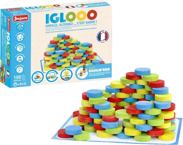Med træbyggesættet Jeujura Igloo kan små byggere gå i gang med at skabe en solid og stilfuld konstruktion. Legetøjet fremmer koncentrationsevnen og de finmotoriske færdigheder og er ideelt til børn fra tre år. Sættet er omhyggeligt fremstillet af bøg- og fyrretræ fra Frankrig. Hver del er malet med sikre, vandbaserede farver, hvilket sikrer overensstemmelse med miljømæssige standarder.