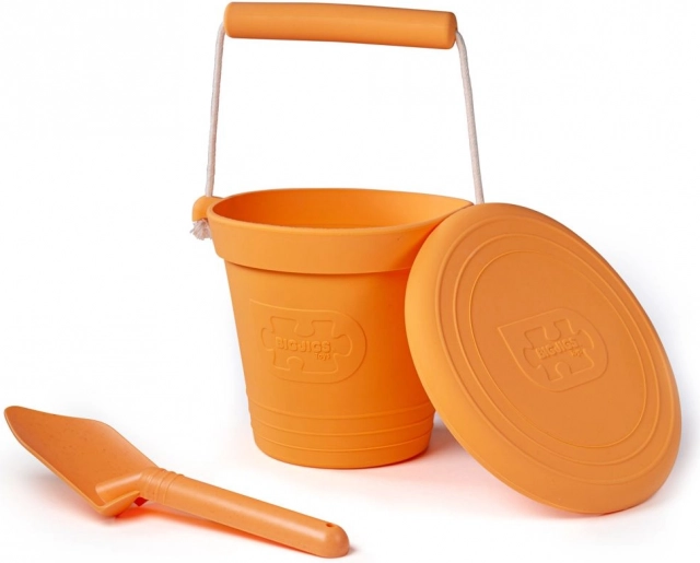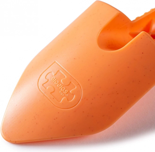 Økologisk orange skovl fra Bigjigs Toys er lavet af bæredygtige hvedefibre, der ligner plastik, men er mere skånsomme for planeten. Den er nem at rengøre og takket være dens kompakte størrelse er den ideel til stranden eller haven.