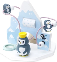 Motorisk labyrint Island forbinder leg og læring ved hjælp af farverige pingviner, der glider ned gennem labyrinten. Børnene træner ikke kun deres motoriske færdigheder, men får samtidig masser af sjov og bevægelse. Legetøjets hovedfordele omfatter støtte til kreativitet og logisk tænkning. Derudover er det et designstykke af den kendte danske illustrator Michelle Carlslund.