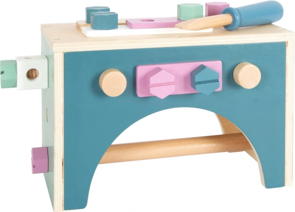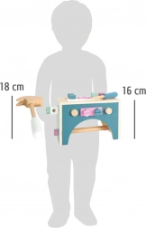 Denne trækasse med værktøj er ideel til børn, der vil efterligne rigtige reparationer og håndværksarbejde. Enkel skandinavisk udformning i blide pastelfarver passer perfekt til ethvert børneværelse:
