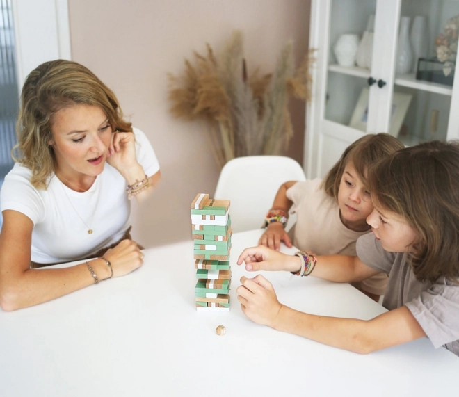 Vakkelværk tårn Gold Edition bringer gennemprøvet familiesjov i et elegant design. Kombinationen af naturligt træ, hvid og trendy pastelfarver med gyldne accenter gør spillet til et stilfuldt element i ethvert hjem. Med 54 kvalitets-træklodser i forskellige mønstre kan I nyde spændende spil med både venner og familie.