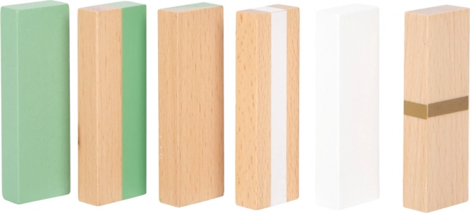 Trendy pastelfarver, gyldne detaljer og naturligt træ gør spillet til et stilfuldt indslag, der passer ind i enhver indretning.