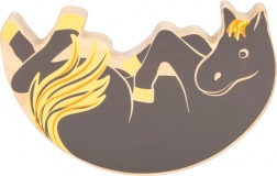 Træbalancering spillet Small Foot tilbyder fantastisk sjov for både børn og voksne. Reglerne er enkle - et kast med terningen bestemmer, hvilket farvet æble der skal placeres på hesten næste gang. Hvis du ønsker et lettere spil, spil uden terningen. Dette spil er ideelt for børn fra 3 år og er designet med et gårdtema med heste og dyr.