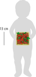 Inspireret af Montessori-metoden giver spillet børn mulighed for at lære på en sjov måde. Spillet med at indsætte og sortere kræver, at børn gennem sammenligning sætter de syv gulerødder i forskellige størrelser i de rigtige huller på brættet. Dette spil sæt hjælper med at udvikle finmotorik, forståelse af størrelser og perception. Desuden understøtter det realistiske design med grønne filtdetaljer også rollespil og udvikling af fantasien hos unge gartnere.