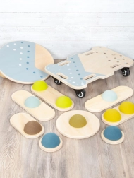 Det minimalistiske udseende med overvægt af naturligt træ og diskrete pastelfarvede accenter passer ind i enhver indretning. Brættet supplerer perfekt de øvrige produkter i Adventure-serien – sammen kan I skabe en sjov gymnastikbane til daglig aktiv leg.