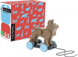 Hunden er lavet af kvalitetstræ og tåler daglig leg takket være den robuste udførelse. Det æstetisk gennemtænkte design passer ind i et moderne interiør og giver samtidig børn glæde ved bevægelse.