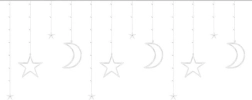 Dette lysgardin har 8 forskellige belysningstilstande, der forvandler interiøret eller haven til et magisk miljø. Belysningstilstandene kan let ændres med den medfølgende fjernbetjening. Takket være strømforsyningen fra nettet skal du ikke bekymre dig om konstant batteriskift. Det inkluderer en transformer, der ændrer spændingen fra 230V til 31V, hvilket sikrer højere sikkerhed og mulighed for at holde lysene tændt hele tiden, selv når du er væk. Pynten har en vandafvisende overflade med klasse IP44, hvilket gør den velegnet både til indendørs og udendørs brug, for eksempel til belysning af hoveddøren eller haven.