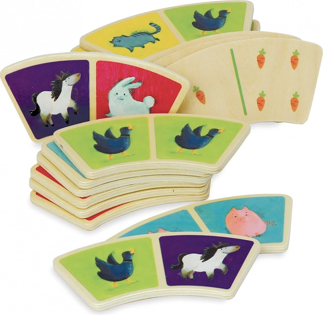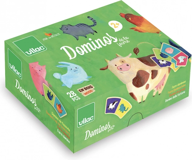 Berig dine børns leg med dette originale dominospil med et smukt bondegårdsmotiv fra Vilac. Takket være den buede form er domino-brikkerne ikke kun unikke, men også lette at gribe for små hænder. Sættet indeholder i alt 28 træbrikker, som giver timevis af underholdning. Domino styrker opmærksomhed, finmotorik og logisk tænkning.