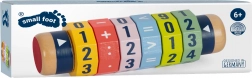 Seks drejbare ringe med tal og symboler gør det muligt at skabe opgaver i addition, subtraktion, multiplikation og division op til 99 – en sjov vej til at forstå det grundlæggende.