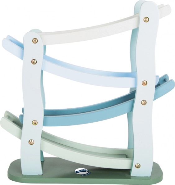 Trækaskadebanen SMALL FOOT Blue er en fantastisk ledsager for børn fra 18 måneder. Bilerne starter fra øverste niveau og suser ned ad de skrå ramper, mens de vender imponerende – alt sammen understøtter fokus, tålmodighed og glæden ved at opdage årsag og virkning.