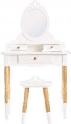 Smukt toiletbord i retrostil, som helt sikkert vil opfylde mange børns drømme. Det vil pryde børneværelset eller legeområdet, er meget elegant og fanger virkelig børnenes opmærksomhed under leg. Viktorianskt ovalt spejl af førsteklasses, brudsikkert akryl, to-etagers bord, 3 skuffer – perfekt til at gemme skatte og småting. Fremstillet af et team af dygtige legetøjsmagere med bæredygtigt gummitræ, et smukt stykke lavet med fokus på detaljer. Bord og stol har ben med en interessant form. Kombinationen af hvidt og naturligt træ giver et tidløst look. Det smukke møbel kan gå i arv fra generation til generation. Hovedegenskaber: toiletbord med stol, til børn fra 3 til 6 år, maksimal bæreevne 50 kg, etisk fremstillet af bæredygtigt træ, malet med ugiftige vandbaserede farver. Pris for legetøjet: Independent Toy Gold Award Winner 2022. Honeybake-kollektion: Legetøjet i denne kollektion indbyder til opdagelse og hjælper børn med at udvikle fantasi, sociale og verbale færdigheder samt kognitive funktioner. Traditionelt design med moderne detaljer vil helt sikkert begejstre børn. Honeybake er Le Toy Vans mest prisvindende kollektion for design, kvalitet, sikkerhed samt uddannelses- og legeværdi.