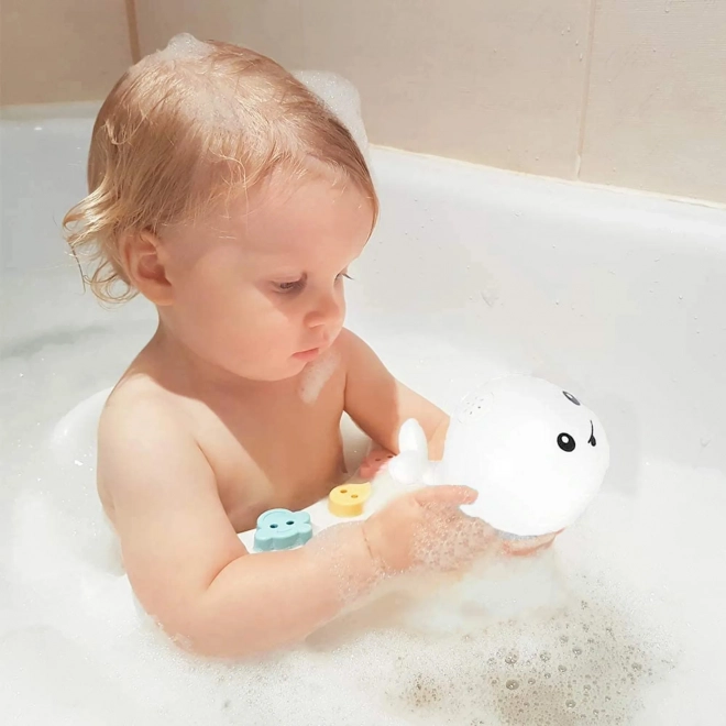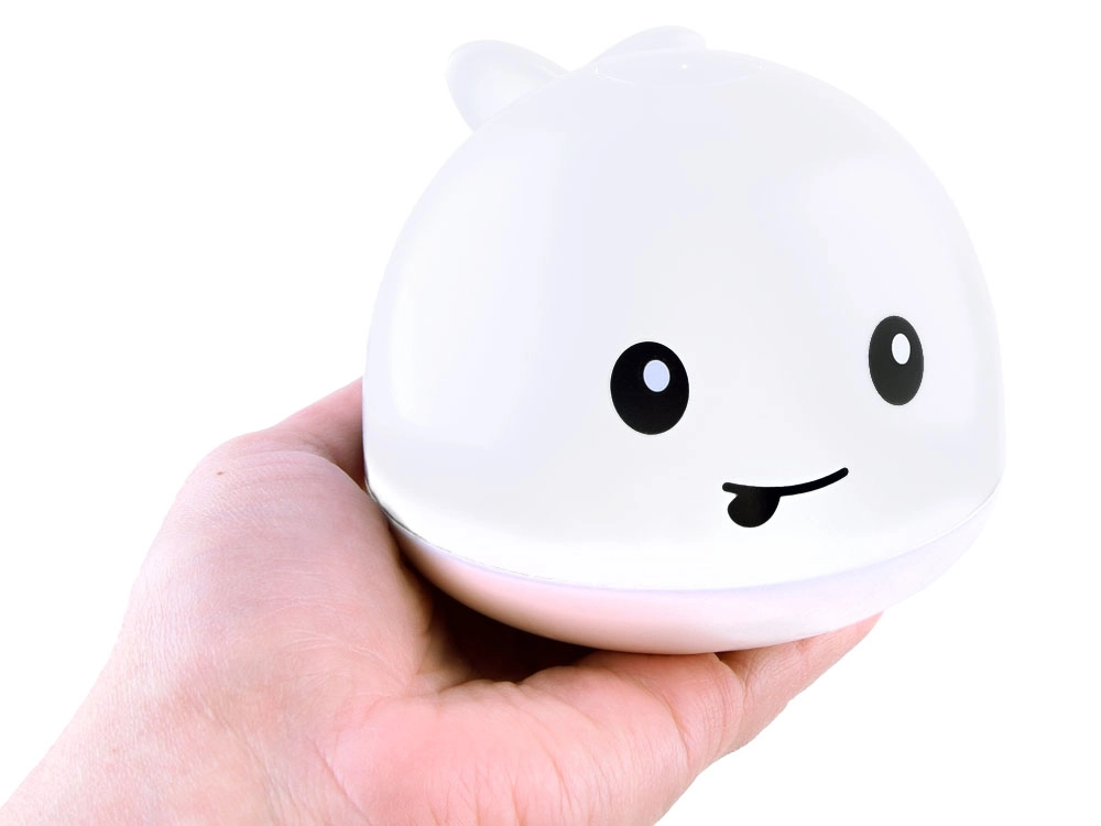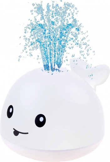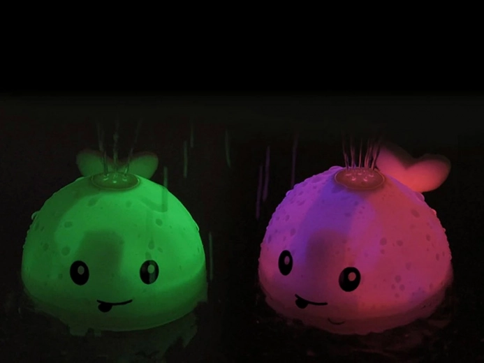 Når hvalen nedsænkes i vand, aktiveres den automatisk og danner en blid vandfontæne, som underholder børn i lange minutter.
