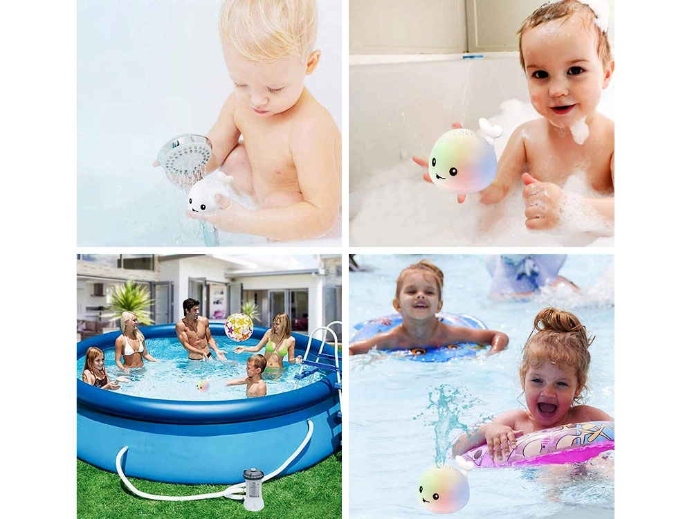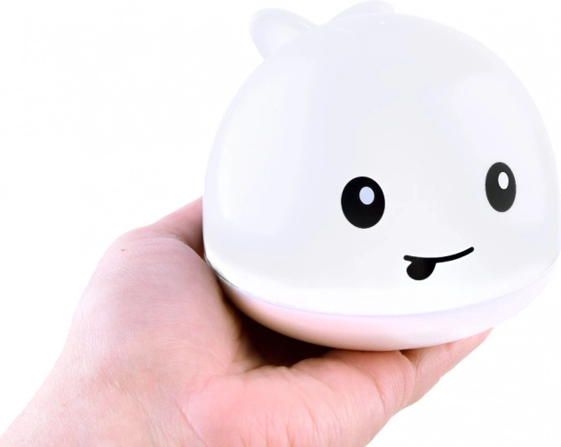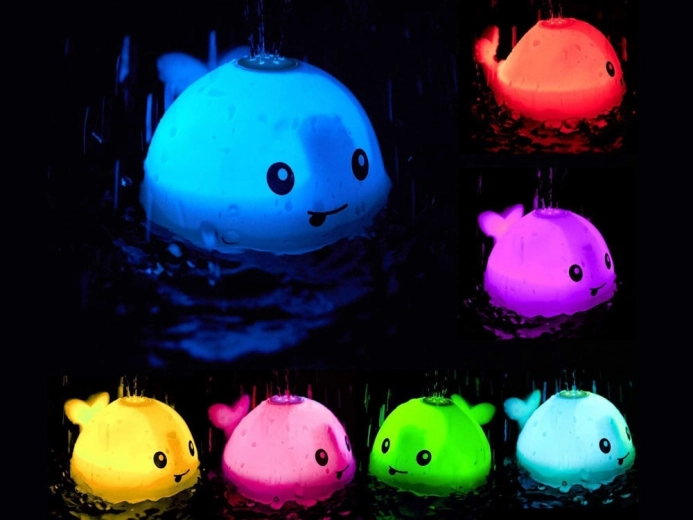 Denne glade badelegetøj tænder af sig selv, når den nedsænkes i vand, og frembringer en vandfontæne ledsaget af farverige lyseffekter. Den glatte overflade og det venlige design er ideelle til små børn, som straks vil elske badet.
