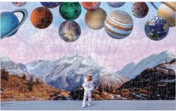 Astronauten i bjerglandskab med planeter stimulerer fantasien og gør puslespillet til både en smuk dekoration og en fremragende gave.