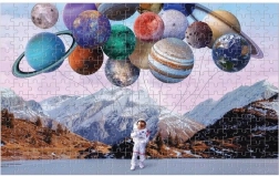 Oplev rummets magi med dette skiftende puslespil med 300 brikker, hvor planeterne ændrer sig ved hver bevægelse. Surrealistisk illustration af en astronaut og planeter som balloner byder på en betagende 3D-effekt, der fascinerer både børn og voksne. Puslespillet er fremstillet af genbrugspapir, trykt med ugiftige blæk, og de enkelte brikker passer præcist sammen for en glat og behagelig læggeoplevelse.