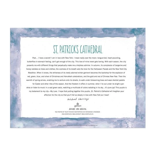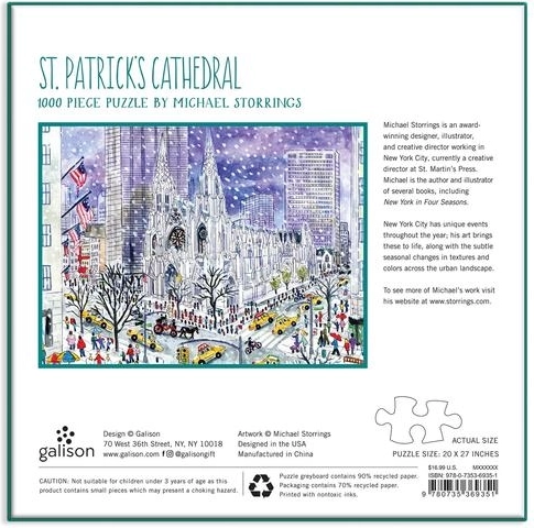 Puslespillet indeholder 1000 brikker og er kendetegnet ved premium kvalitet med detaljer af den ikoniske Sankt Patricks Katedral.
