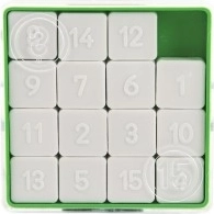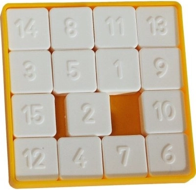 Dette skydende puslespil er ideelt for alle, der elsker udfordringer og logiske spil. Det indeholder femten nummererede brikker, der skal arrangeres ved at flytte dem. Målet er at få tallet et til den øverste venstre hjørne. Under spillet må brikkerne ikke berøres eller fjernes fra boksen.