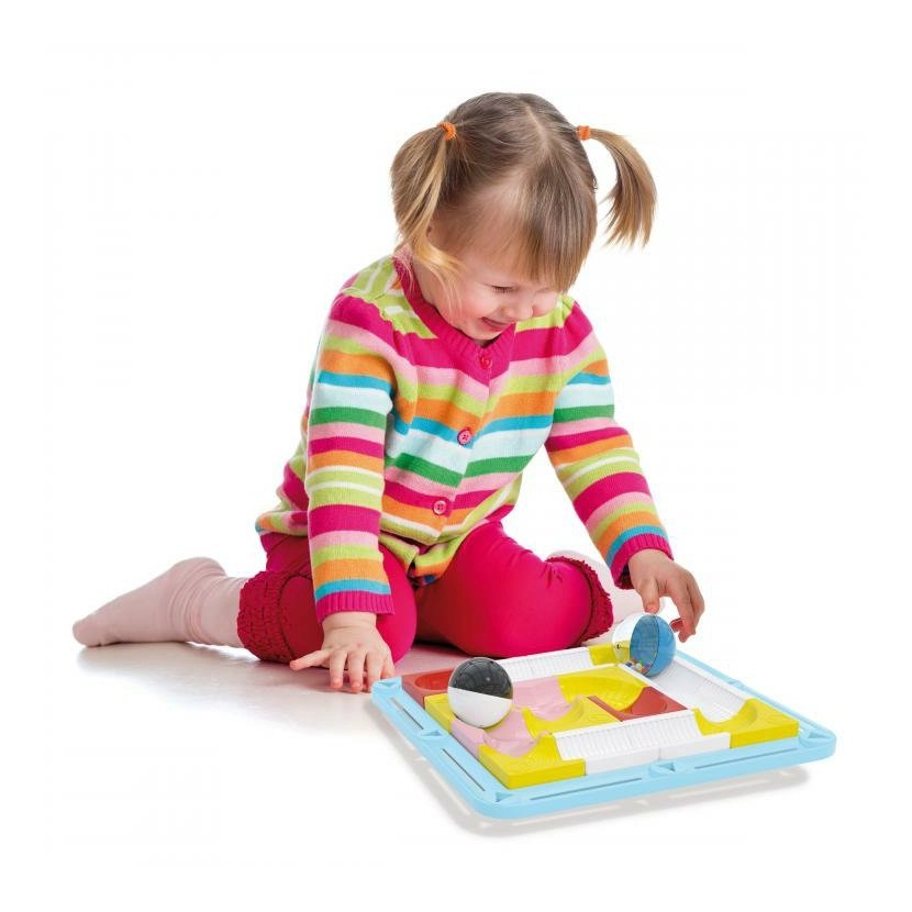 At føre kuglerne gennem forhindringer forbedrer greb, præcision i bevægelser og øje–hånd-koordination hos de mindste børn.