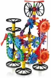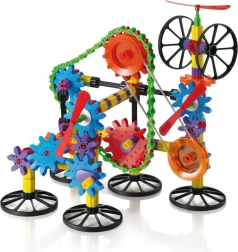 Farverige komponenter, stænger, hjul og gear gør det muligt at skabe både simple og komplekse modeller. Kun fantasien sætter grænser.