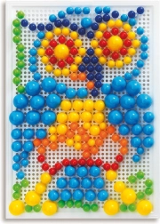 Skab fantastiske mosaikker og mønstre med de farverige knopper placeret på den faste hvide plade.