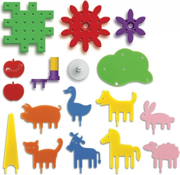 Quercetti Georello Farm er det ideelle legetøj til hvert barn, der elsker at skabe og bygge. Dette gear-byggesæt indeholder perforerede plader, aksler, tandhjul og dyrefigurer, som nemt kan samles til en fantastisk gårdscene. Med et håndsving kan du sætte mekanismen i gang og se alt dreje rundt som på en karrusel.