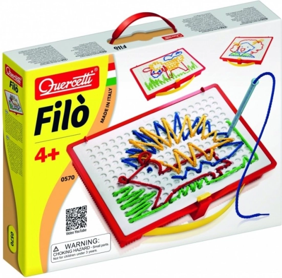 Oplev magien ved kreativ leg med broderisættet Quercetti Filò, der støtter børns fantasi og finmotorik. Med specielle penne kan børn skabe forskellige billeder ved at indsætte farvede snore i huller på spillepladen, hvilket bringer dem glæde og sjov.