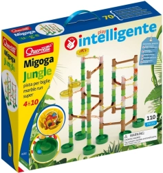 Kuglebanen Migoga Jungle giver børn fra 4 år sjov læring gennem leg. Farvede kugler starter samtidig og fortsætter derefter ad forskellige veje fulde af broer, spiraler og rutsjer inspireret af junglens former. Børn kan bygge efter vejledninger eller skabe helt originale konstruktioner.